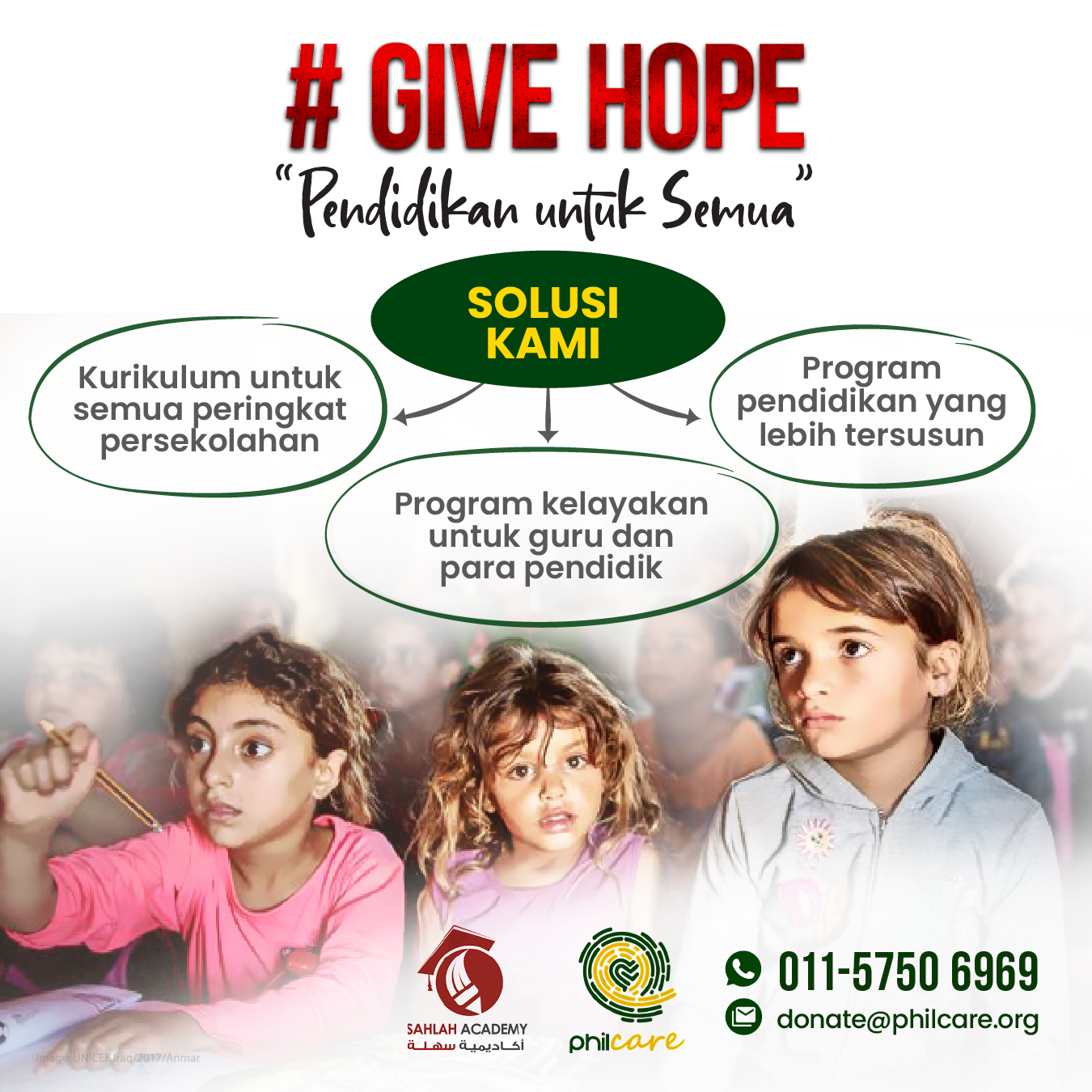 Sepanjang pandemik COVID-19, ia telah menjejaskan pelbagai kumpulan secara negatif, dan kanak-kanak pelarian serta anak-anak yatim di seluruh dunia tidak terkecuali. Kanak-kanak pelarian sangat sukar bagi mereka untuk memperolehi pendidikan formal kerana pelbagai faktor, terutamanya kewangan. Hal ini jelas menyayat hati dan jurang itu perlu dielakkan agar mereka memperolehi peluang yang saksama untuk menjadikan kehidupan yang lebih baik supaya masa depan mereka lebih terjamin. Kami berharap dapat menjadikan pendidikan sebagai satu realiti dan mudah diakses bagi mereka yang memerlukannya.